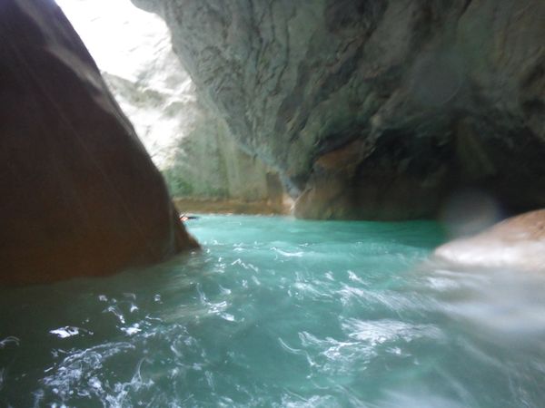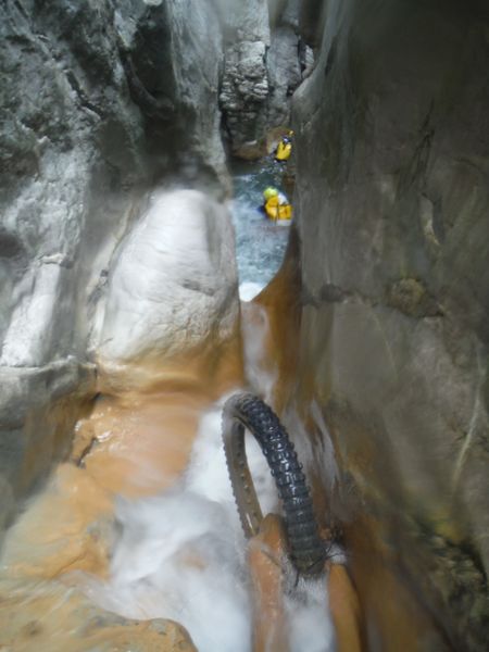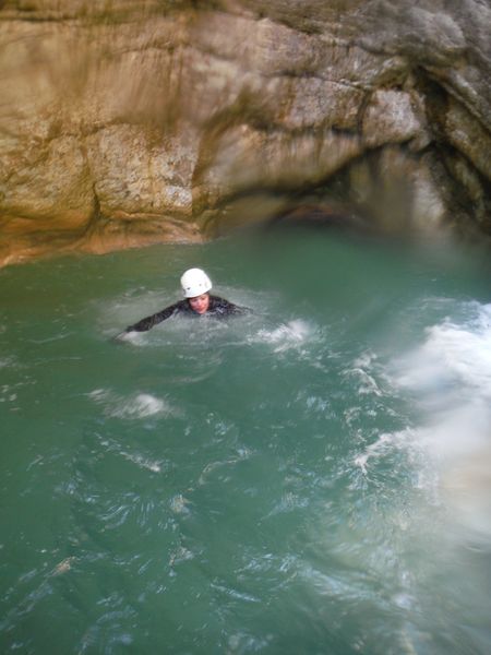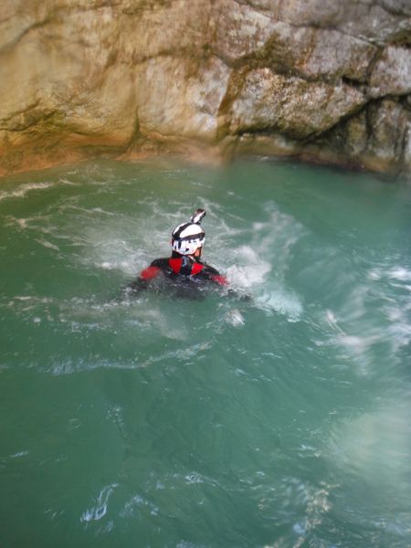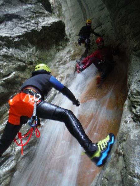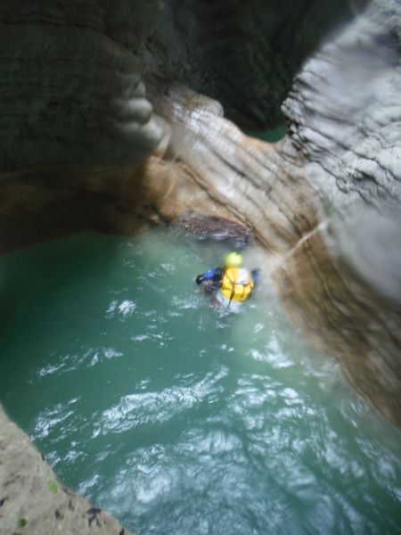 Scivolo con assistente all’atterraggio. Come sta facendo Michele, le proviamo tutte per scendere in maniera controllata ma la corrente ti spinge letteralmente giu’. L’arrivo pero’ tutto sommato e’ morbido.
