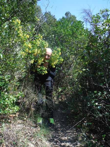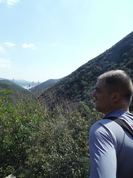 Come al solito sono l’ultimo ad essere pronto. Claudio e’ partito subito appena cambiato, seguito da quasi tutti. Solo Matilde e Michele si impietosiscono e mi attendono. Quando ci avviamo anche noi, gli altri sono scomparsi. Poco male il paese e’ in vista, il sentiero di rientro sara’ in quella direzione. Michele parte come un razzo seguendo il sentiero che dopo alcuni metri si trasforma nel letto di un piccolo corso d’acqua al momento completamente in secca. Visto che procede cosi’ deciso, nonostante mi venga qualche dubbio circa la strada da prendere, lo seguo. Dopo un centinaio di metri pero’ lo vedo fermarsi indeciso. Non si vede traccia alcuna del passaggio dei nostri amici, forse non e’ questa la strada giusta. Risolviamo subito con qualche urlo. Il gruppo in avanguardia ci risponde, sono alla nostra destra, sopra di noi. Tagliamo decisi verso destra salendo quasi sulla massima pendenza. In pochi minuti superiamo almeno trenta metri di dislivello e usciamo dalla vegetazione intercettando il sentiero che riporta a Prodo. Faccio anche a tempo a vedere il gruppetto di testa che scompare tra le fresche fratte.