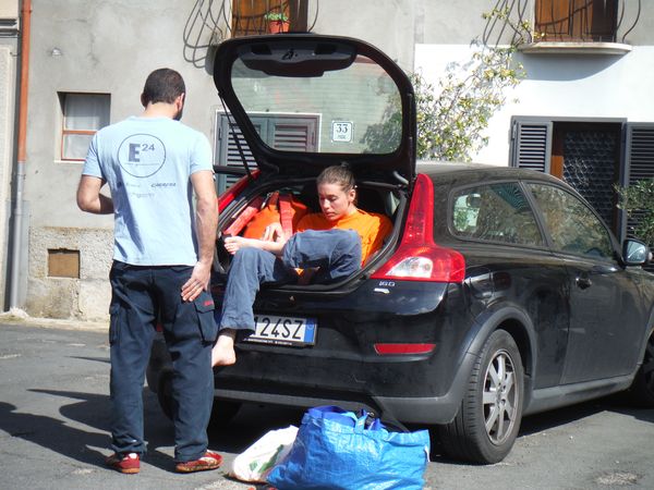 Quando scendo per riporre il mio zainone in macchina trovo Matilde perfettamente integrata nella macchina di Michele.