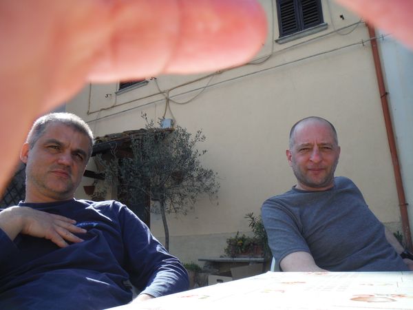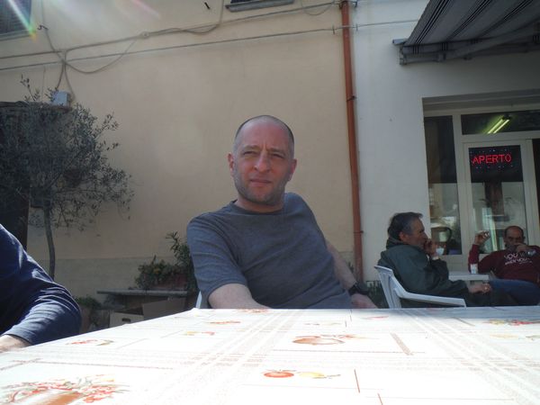Ho riempito la foto di “diti”, ma la lascio ugualmente. Claudio quasi sorride, stanno per arrivare i panini.