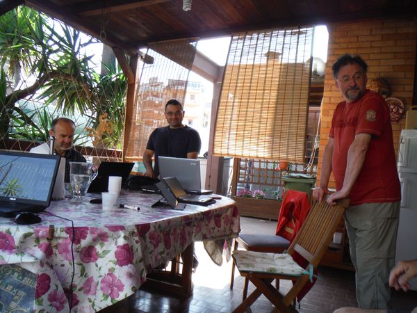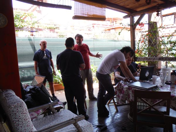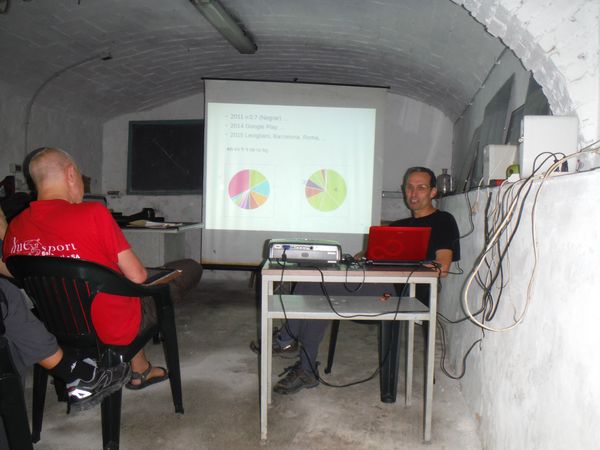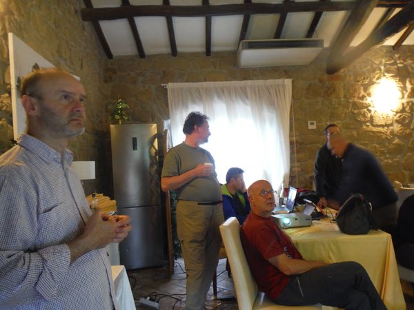 Marco mentre tenta di spiegare TopoDroid a noi testoni. Personalmente faccio affidamento su Fabio che vedo prendere appunti con molto metodo e precisione.