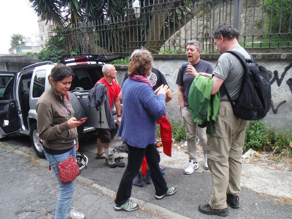 Roberto ci attende pazientemente mentre ultimiamo i preparativi e formiamo i gruppi. Partiamo tutti dall’ingresso ma poi dentro le catacombe ci divideremo prendendo, ogni gruppo, una porzione differente delle ampie catacombe.