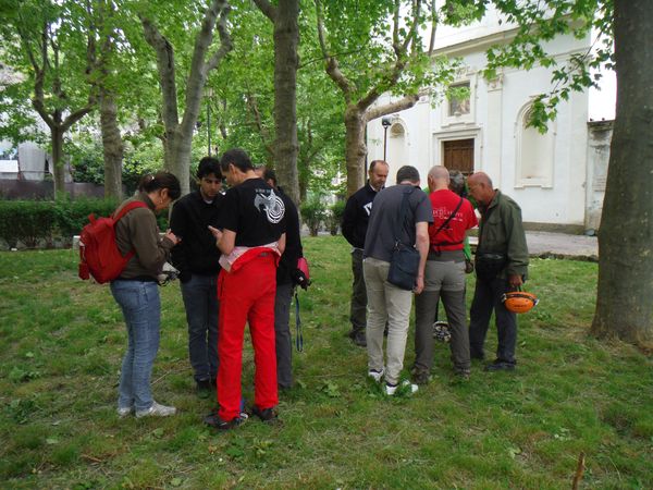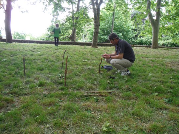 Vincenzo e’ il piu’ metodico, cerca dei rami e li dispone a quadrato. Li usa per effettuare la noiosa quanto necessaria procedura di calibrazione per la quale servono ben 56 misure prese in 14 diverse direzioni. Io sono stato previdente e la calibratura l’ho fatta ieri a Villa Torlonia quindi ora posso infastidire gli altri mentre operano.