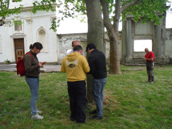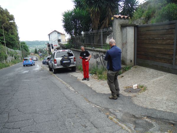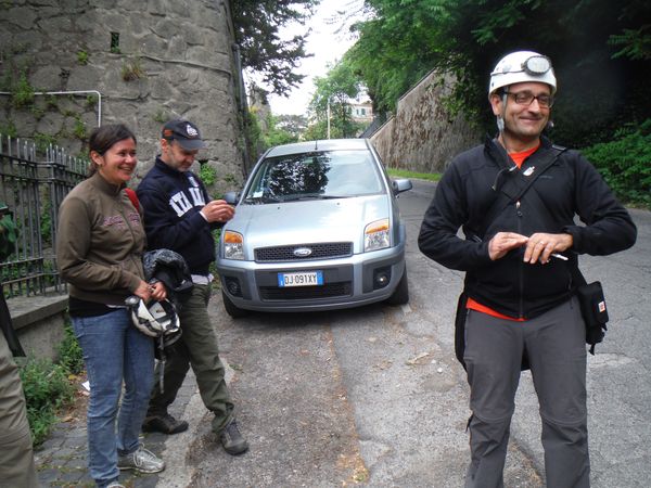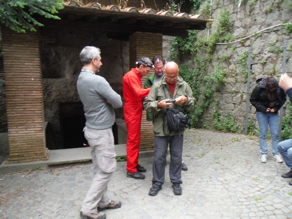 Ci avviamo alla prova pratica. Marco gia’ suda freddo sapendo cosa lo aspetta nelle catacombe. Praticamente dovra’ fare il rilievo per tutti.