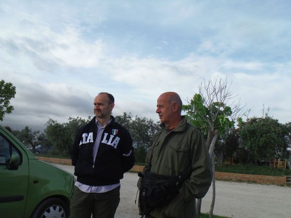 Tom sorridente e Gianni ancora intento ad elaborare i dati del rilievo.