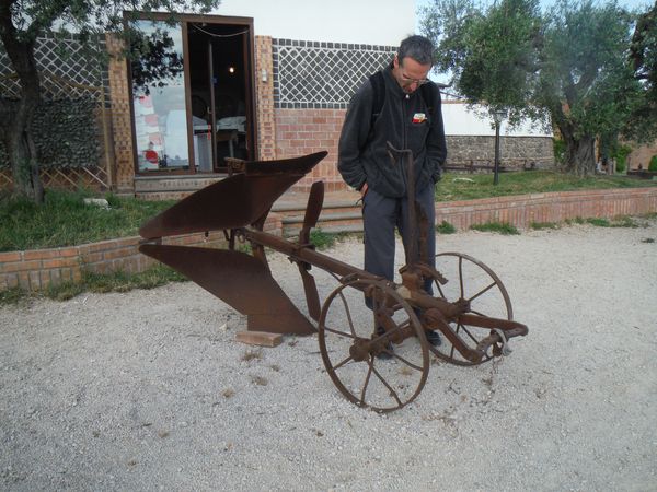 Aspettiamo di essere tutti per entrare. In ganniamo il tempo osservando i resti di quasi antiche macchine agricole.