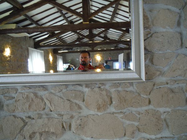 Lo specchio sul fondo della sala e’ una tentazione troppo forte.