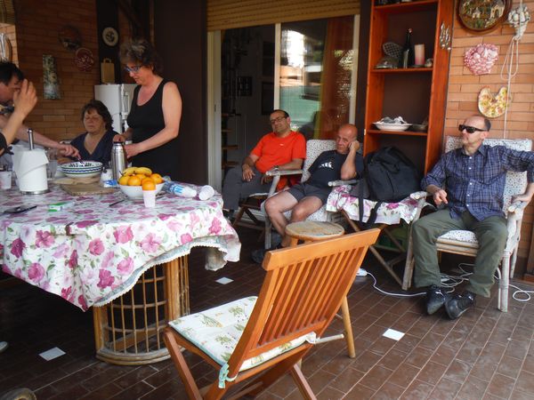Eccoci tutti fuori, Rosa e Stefano ci hanno raggiunti. Azzi invece e’ partito. E’ tornato a casa a prendere Cristina e Tiziano, verranno assieme direttamente al ristorante.
