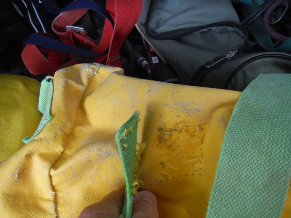 Gli mostro lo zaino fedifrago con il maniglione scucito, quello che ha causato la caduta del trapano di Giuseppe al Vorgozzino. Ora il trapano e’ in riparazione, speriamo si chiuda presto questa triste parentesi.