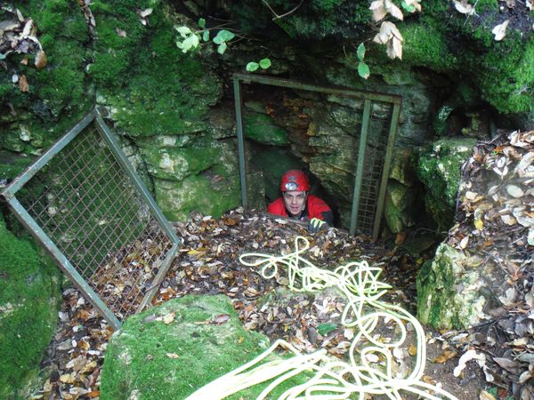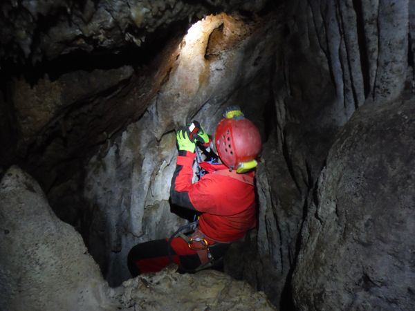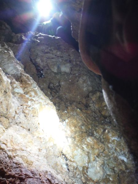 Siamo a pochi metri dalla superficie, lo testimonia la lunga radice sulla sinistra di Simone.