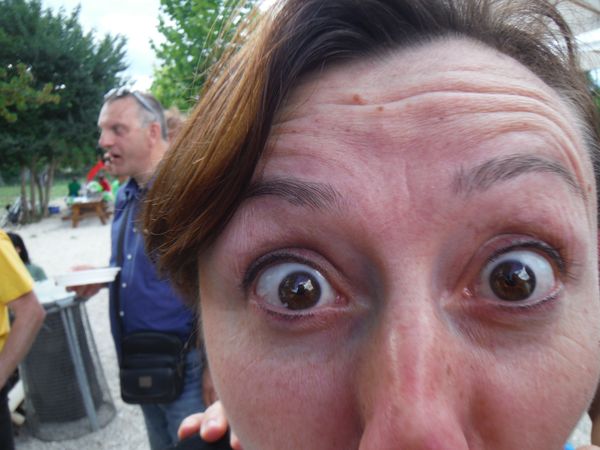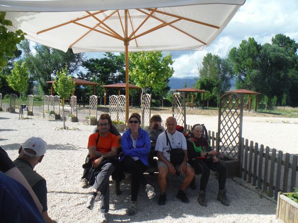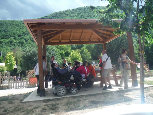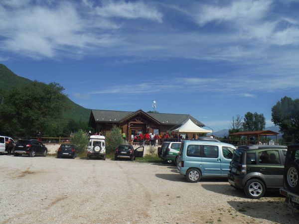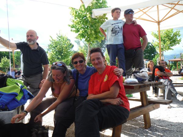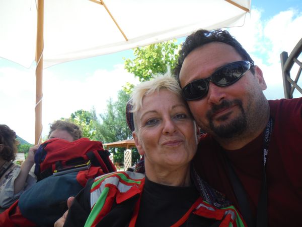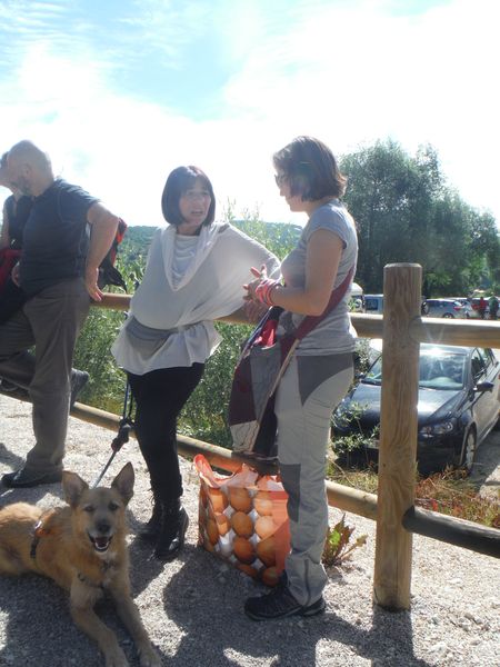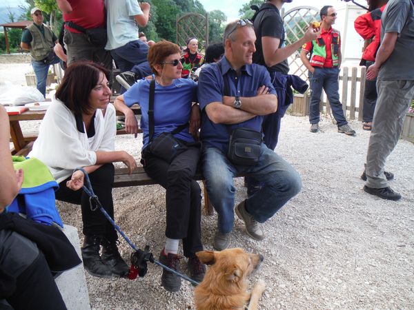 Una volta ritornati alla base e trovato parcheggio mi cambio velocemente e poi ci dirigiamo velocemente alle tettoie dove si distribuiscono cibarie. Con Betta ci riforniamo di tante cose buone e poi ci ritiriamo con alcuni amici per consumarle. Ci sono alcune piccole tettoie simili alla nostra e sono tutte occupate da amici. Anche il pasto e’ molto allegro.
