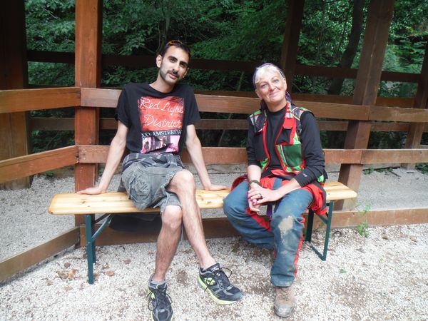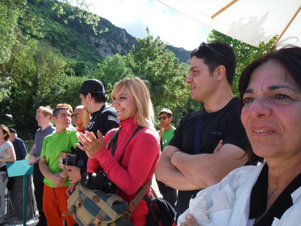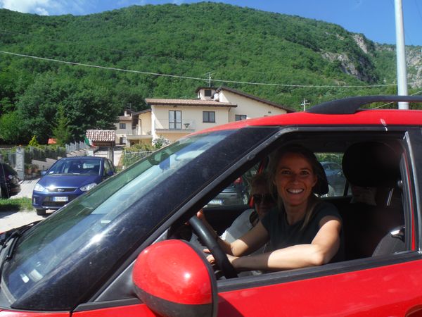Oramai il grosso delle persone si e’ avviato per tornare giu’ alla biglietteria dove ci aspetta il pranzo, o meglio la merenda visto che sono quasi le 4 del pomeriggio. Flavia, con le corde, e’ rimasta a piedi. Ci sarebbe la navetta per risolvere il problema ma non si puo’ rinunciare ad un cosi’ bel sorriso quindi la prendiamo volentieri con noi.
