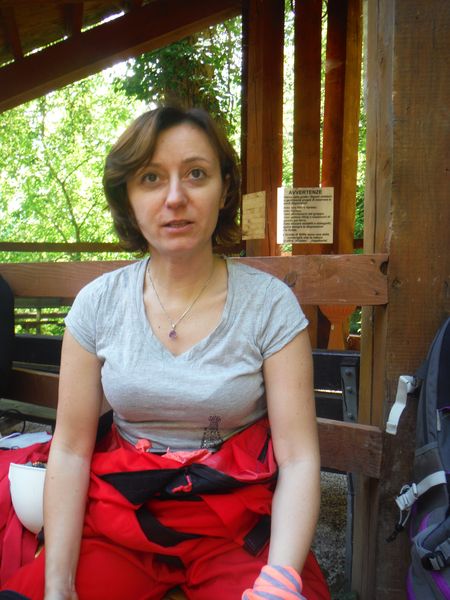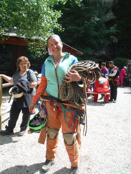 Iniziamo a prepararci per andare all’ingresso della grotta. Antonella e’ pronta a partire.