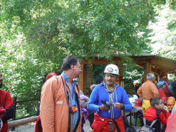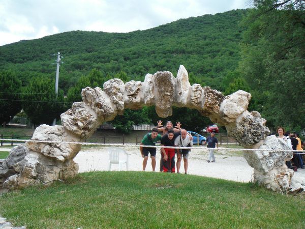 Gianni, Nerio, Antonella. Degli altri purtroppo non conosco i nomi. In fondo la tettoia che guida all’ingresso della grotta.