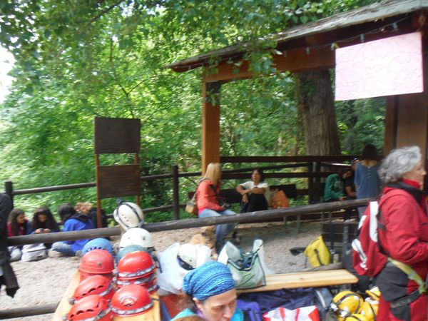 Intanto chi e’ in paziente attesa del proprio turno inganna il tempo come meglio puo’. Riprendo Simona di spalle, ho da poco capito che saro’ nella squadra che avra’ il piacere di accompagnarla in grotta.