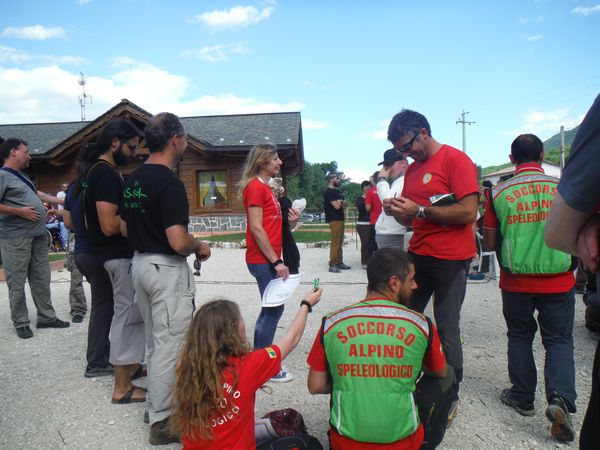 L’organizzazione inizia a muovere i primi passi. Tutti i volontari delle varie delegazioni regionali del CNSAS convenuti per la manifestazione iniziano ad organizzarsi facendo un bel briefing.