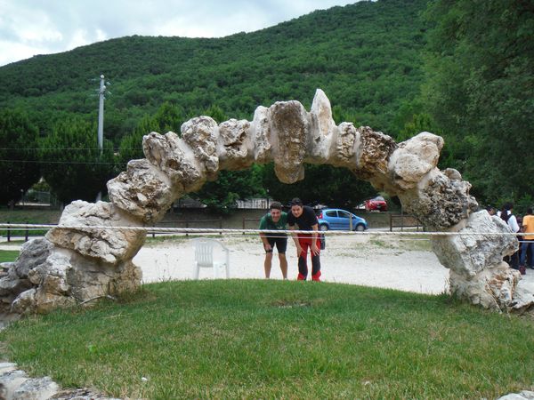 E’ quasi ora di partire. Un caffe’ e poi attiro qualche amico per delle foto sotto l’arco di pietra. La prima con Giulio e Simone.