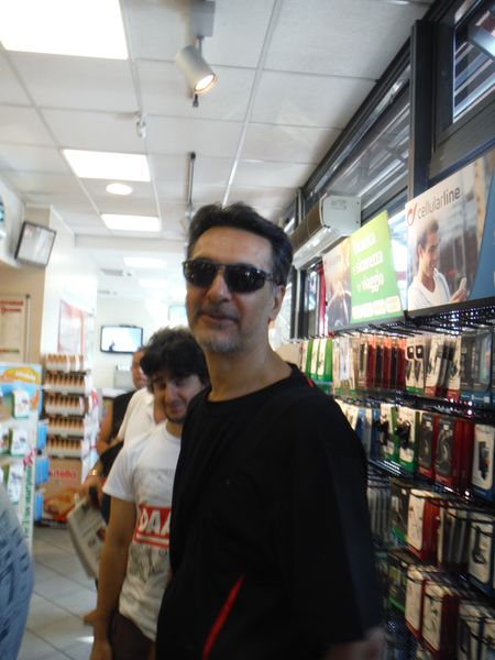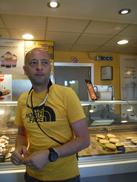 Ed ora a noi! Stavolta l’appuntamento “finale” e’ a Civitella, vicino alla grotta, pero’, chi parte da Roma, per la Roma-L’aquila deve passare e quindi e’ quasi naturale incontrarsi alla prima area di servizio. La “nostra” macchina (quella di Claudio in verita’!) e’ composta da Claudio, Stefano ed io. Eccoci tutti riuniti al bar dell’area di servizio. Con la fida fotocamera ho ripreso al volo Stefano ed Adriano.
