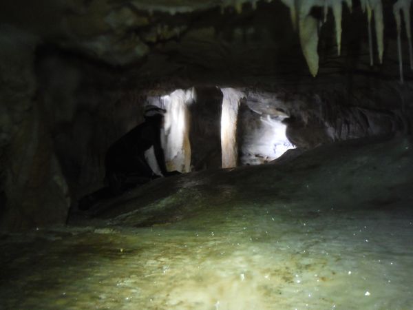Dopo la traversata di un altro lago, facciamo una rapida deviazione su un breve ramo laterale, molto bello. Daniela si presta come modella e a fare illuminazione aggiuntiva.