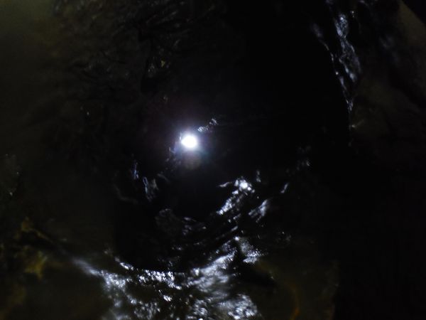 Arriviamo alla parte emersa, passiamo accanto alla risalita da fare. Qualcuno ha lasciato lo zaino qua prima di proseguire per il sifone finale. Anche noi facciamo lo stesso.
