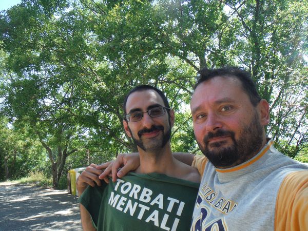 Era parecchio che volevo ritornare di nuovo all’Erebus per una “ultima” occhiata. L’uscita stava per andare a monte poiche’ tutti i miei amici avevano impegni. In extremis e’ venuto in mio soccorso il buon Matteo che si e’ offerto di accompagnarmi. Notevolmente risollevato nel morale ho preso appuntamento con lui per la domenica mattina. Alle 9, partenza comoda, ci vediamo sotto casa mia. Matteo parcheggia la sua macchina al posto della mia e partiamo. All’area di servizio in autostrada ci fermiamo per colazione e benzina. Per le 10 scarse siamo a S. Oreste. Un breve giro alla pizzeria per le cibarie, una rapida sosta alla capannetta dell’acqua per riempire una bottiglia di acqua piacevolemte ghiacciata e siamo pronti. Arriviamo al parcheggio in cima ed e’ d’obbligo un selfie per commemorare l’uscita.