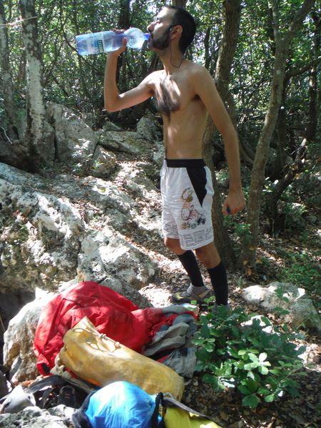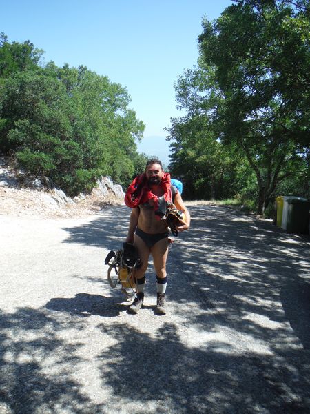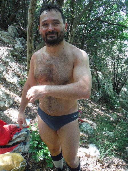 Io parto il piu’ spogliato possibile, gia’ so che faro’ una sudata memorabile per arrivare alla grotta.