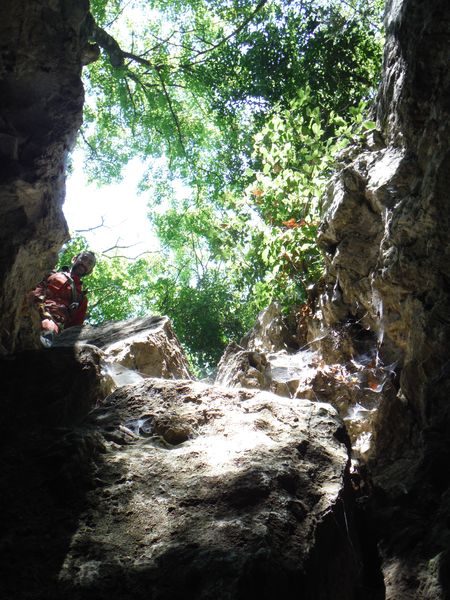 A meta’ pozzo ci si sposta lateralmente per un paio di metri per scendere l’ultima parte. Mentre attendo la libera mi diverto a fare qualche foto.