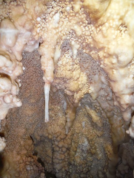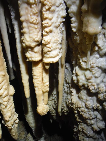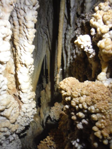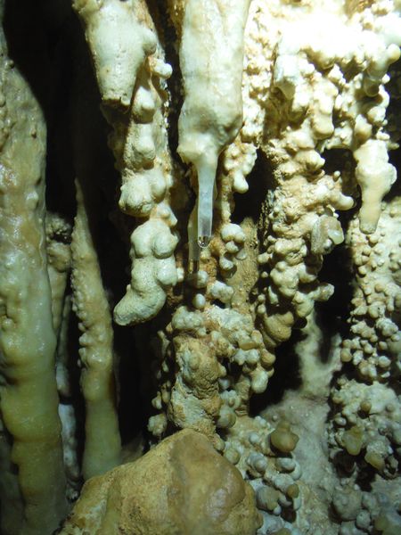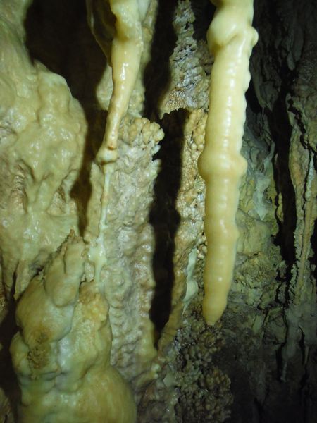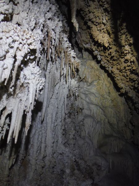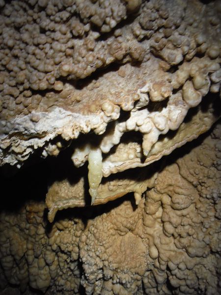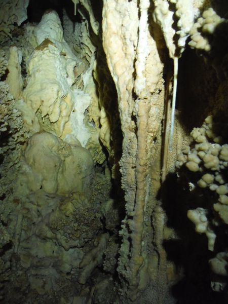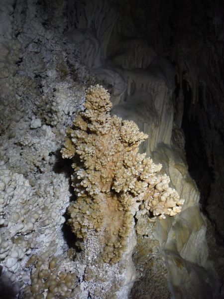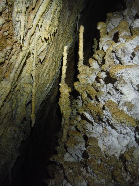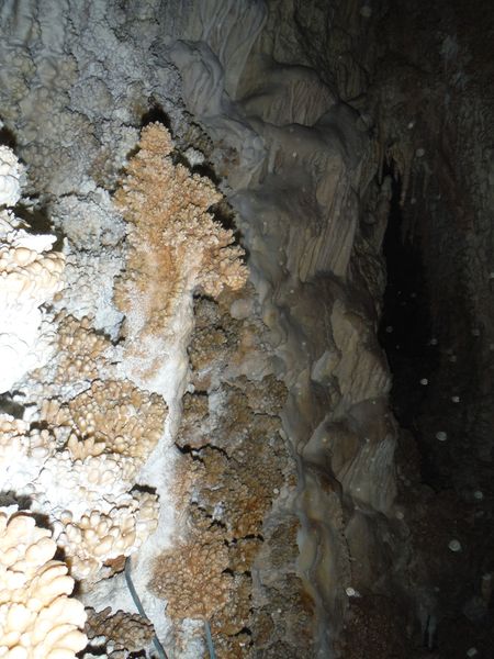 E’ strano, in molti punti ci sono delle concrezioni “nuove” e lucide d’acqua e vicino altre che sembrano “smangiucchiate” da qualche agente corrosivo. Lo avevo gia’ notato in molti punti di questa seconda parte della grotta.