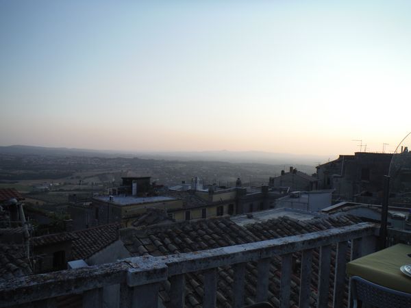 Tra aperitivo, chiacchiere, telefonate agli amici ed a casa per avvertire che e’ andato tutto bene il tempo passa in fretta. Alle 8 siamo puntualissimi alla porta di Alessandro. Ecco la vista mozzafiato della terrazza.