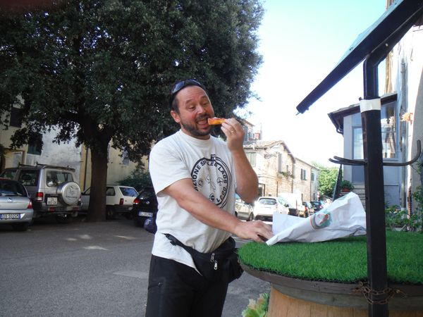 Eccomi impegnato nella degustazione della pizza locale.