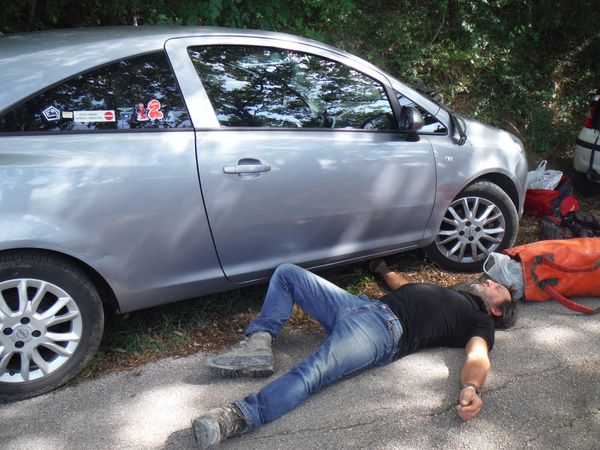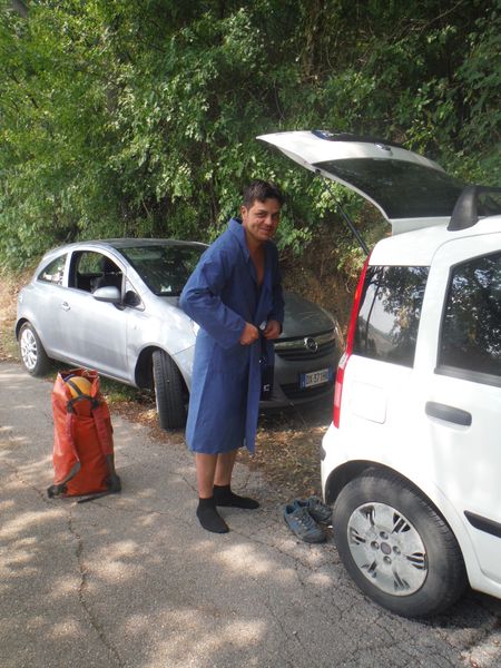 Scendo veloce alle macchine, trovo Simone un poco ripreso, si prepara per il bagno alle terme.