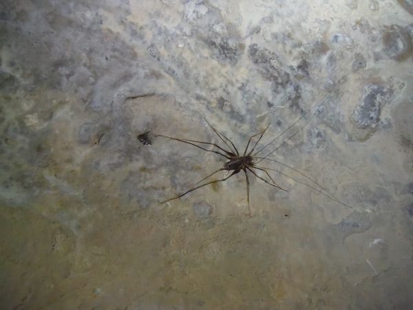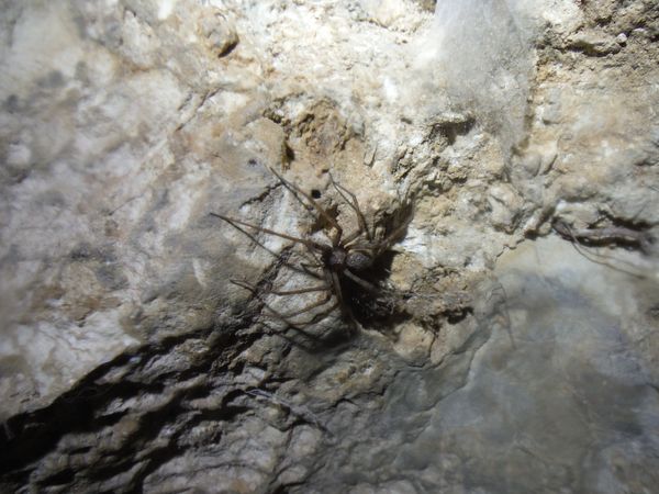Oramai sono in vista dell’uscita, sono alla base del secondo pozzetto dove abbiamo messo noi le corde. La parete e’ densamente popolata da bei ragnoni.