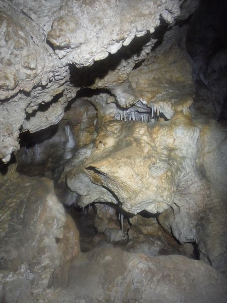 Sembra che le nostre amorevoli cure facciano effetto sul dolorante Simone. Si riprende un poco. Non abbastanza da venire in grotta, pero’ ci accompagna fino all’ingresso. Faremo una rapida visita alla grotta per poi convergere compatti alle terme dove speriamo che l’acqua termale possa giovare al sofferente.