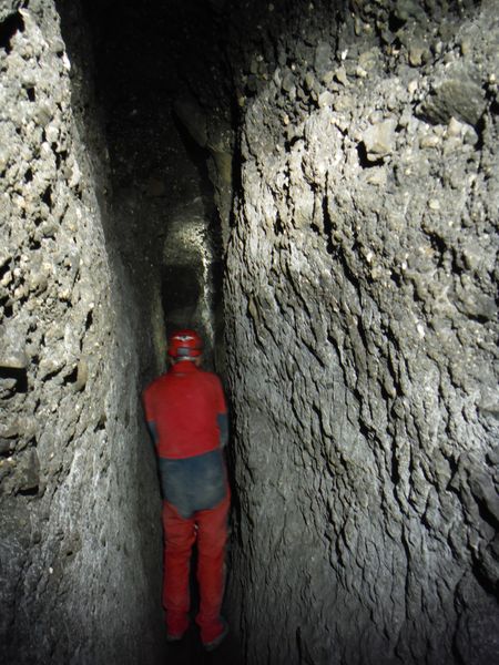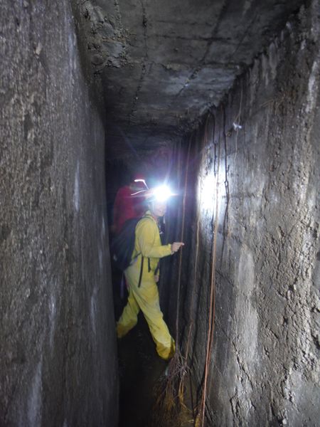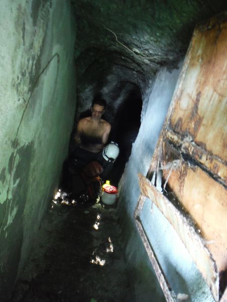 Stefano stretto nel cunicolo.