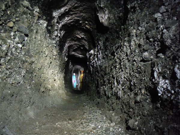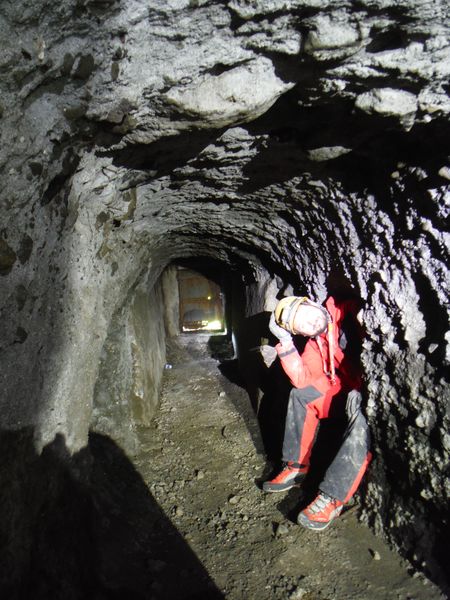 Dopo qualche incertezza arriviamo al livello degli ingressi ai cunicoli. Stefano prende la testa della fila e ci guida.
