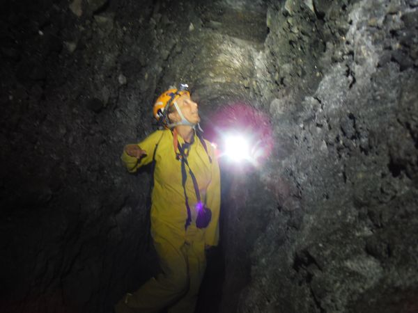 Qualche prova la facciamo anche in questo punto dove la volta si abbassa, prima con Stefano che illumina subito dopo.