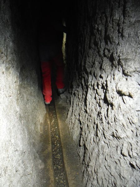 Alla base del cunicolo c’e’ una canaletta che sembra essere di realizzazione piu’ recente rispetto al resto.