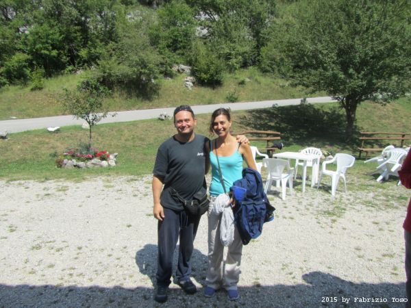 Il ritorno e’ piu’ veloce e con poche soste. Ritorniamo al sole caldo con piacere anche se si ricomincia subito a sudare. Alla biglietteria trovo una sorpresa, Luisa, mia quasi-cugina, amica e collega e’ in vacanza a Tagliacozzo ed e’ venuta a visitare la grotta! Una foto ricordo dell’incontro ci sta tutta.
