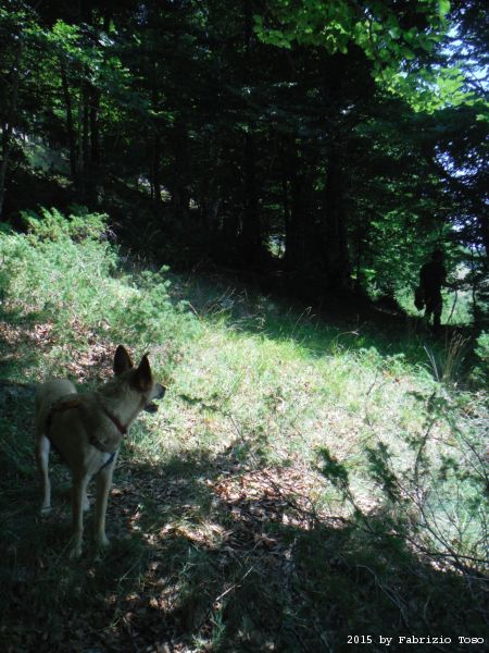 Ricognizione a Camporotondo verso grotta Picinara. Con Gabriele, io e Luna.