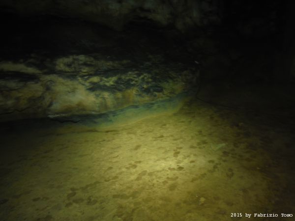 Per terra il piano di fango e di lato il bordo nero che indica il livello dell’acqua.