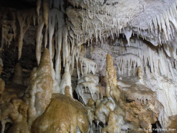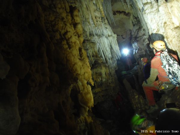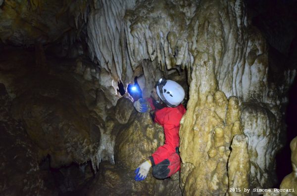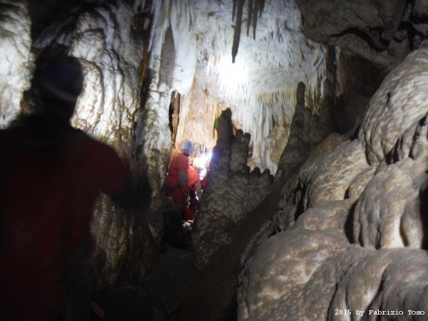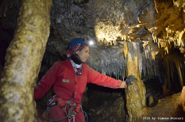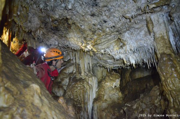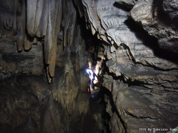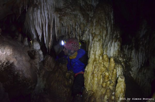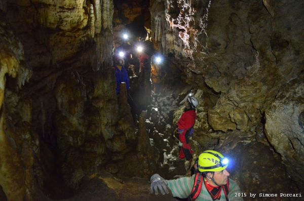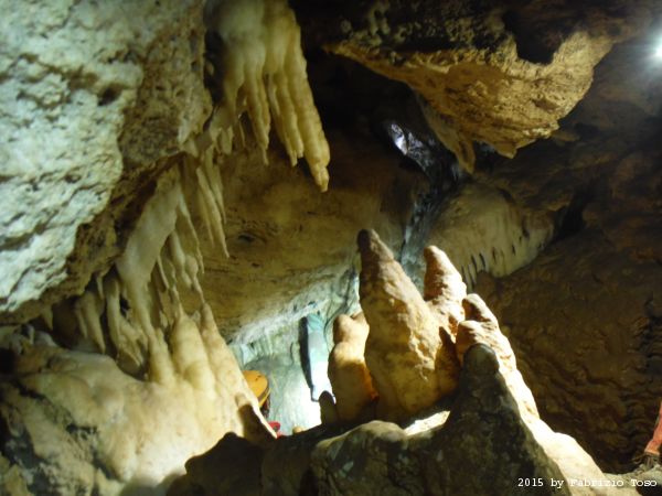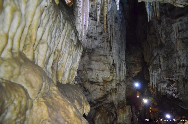 Continuiamo a girare apparentemente senza meta tra stalattiti e stalagmiti, abbiamo una fiducia sconfinata nel senso dell’orientamento di Simone.