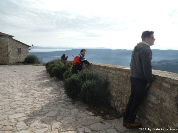 Quando escono stiracchiandosi dalla macchina esce fuori un possibile problema che ci terra’ compagnia per tutta la giornata. Claudia ci chiede candidamente se per caso a Titignano ci sia un benzinaio. Noi sorridendo gli rispondiamo di no chiedendo il perche’ della sua domanda. La risposta ci lascia un poco sorpresi, quando siamo partiti da Orvieto si e’ accesa la riserva ed ora Claudia teme di non farcela! Arrivati sin qui si puo’ fare altro che giocarsela e continuare fidando nel parco consumo della panda.
