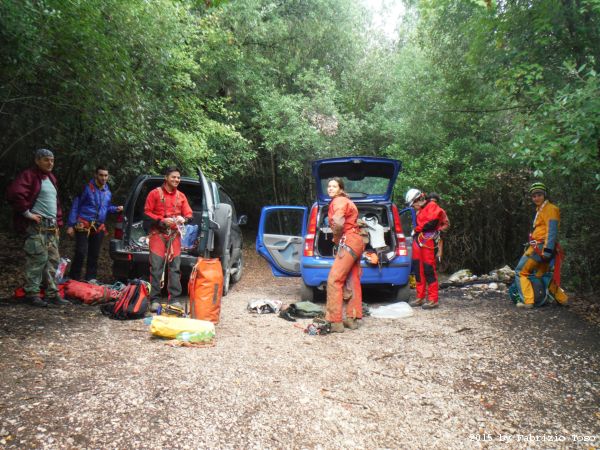 Ora che le foto di Simone son terminate, andiamo a cominciare. Dopo l’appuntamento alle 9 al bar “fico” di Orvieto ci dirigiamo verso la grotta. Una breve sosta a Prodo per mostrare ai nostri amici da dove parte l’omonima forra e’ quasi d’obbligo.