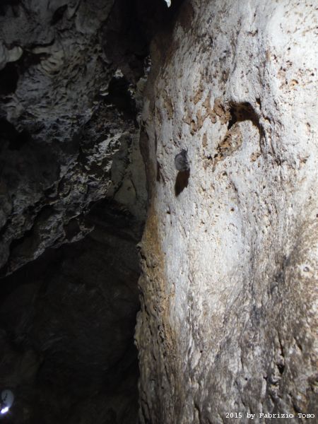 Ogni tanto si incontrano pipistrelli, sia in volo che appesi alle pareti. Sulla parete ce ne sono un paio, quelle 2 piccole macchie scure in alto.