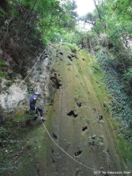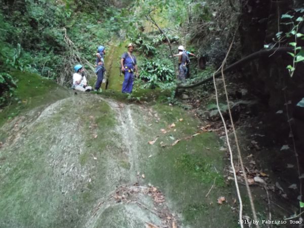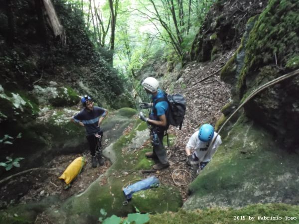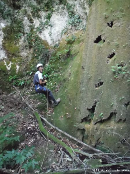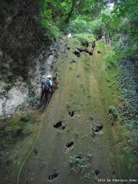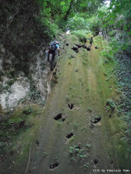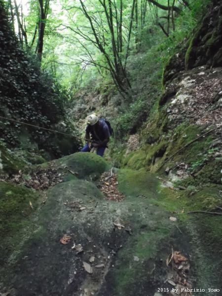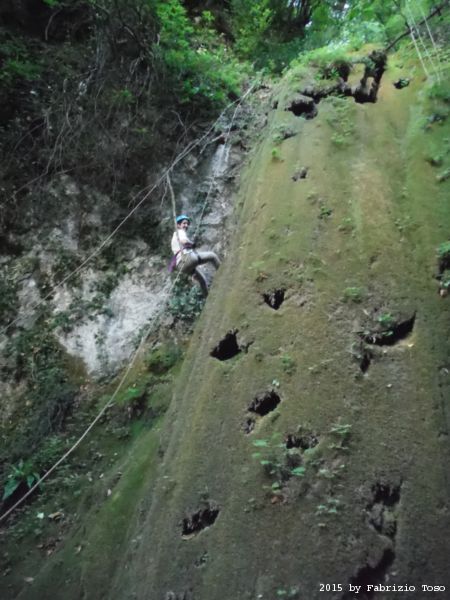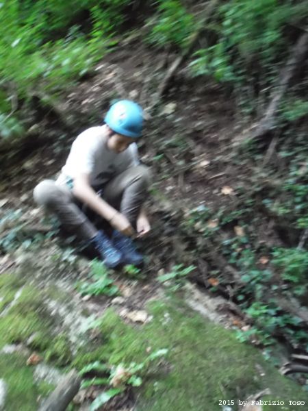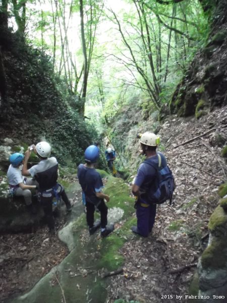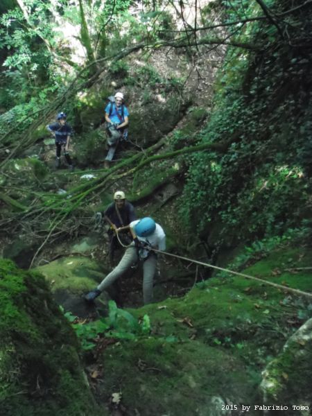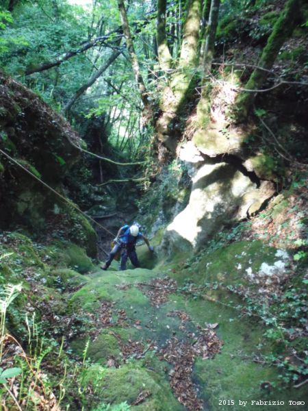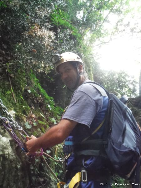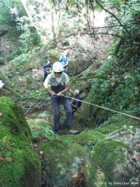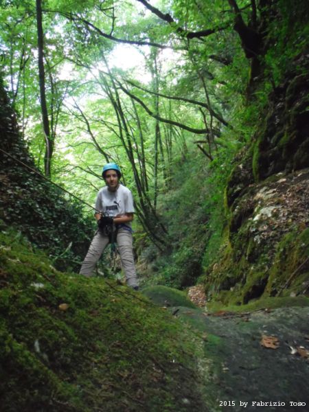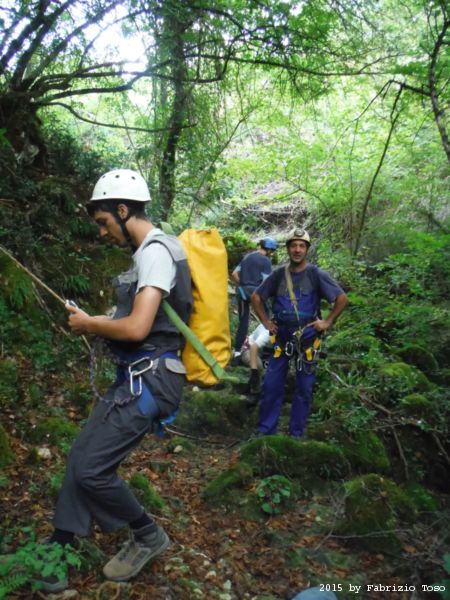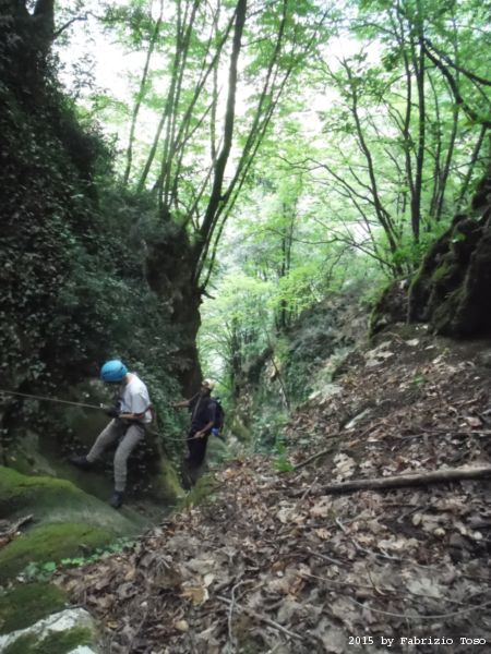Iniziamo la discesa della forra. Ora si fa sul serio! Il primo a scendere dopo Stefano e’ Tommaso, quindi e’ il momento di Andrea.