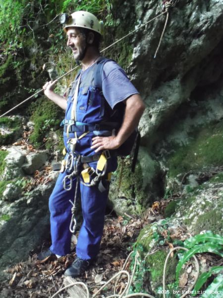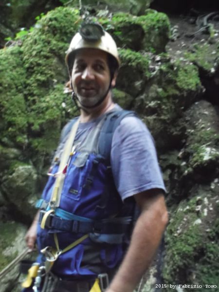 Mentre io scendo e disarmo, il gruppo scende al salto successivo. Quando li raggiungo, Stefano sta attrezzando per scendere.