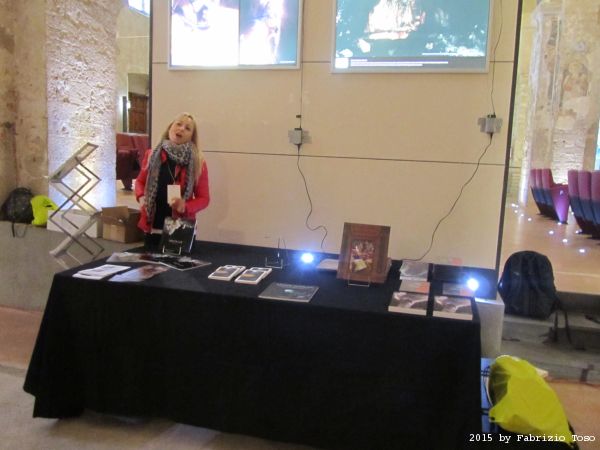 Lo stand con in vendita il libro dedicato all’indimenticato Lucas ed alla grotta a lui dedicata da Paolo. Ambra e’ molto contenta di essere fotografata!