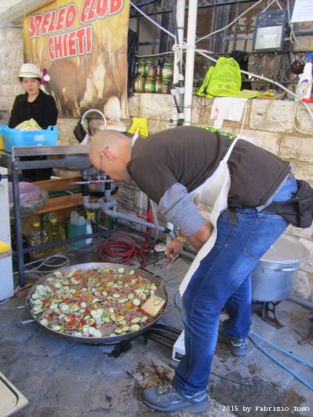 Girin girando ci e’ venuta fame, andiamo allo speleobar a vedere se c’e’ gia’ qualcosa di pronto. Ci fermiamo “casualmente” vicino allo stand dei miei amici di Sacile-Pordenone e dintorni. Sono in preparazione tante bonta’.