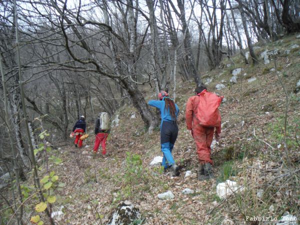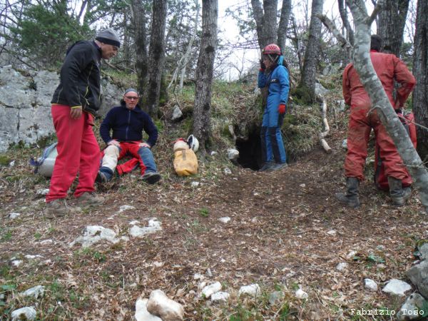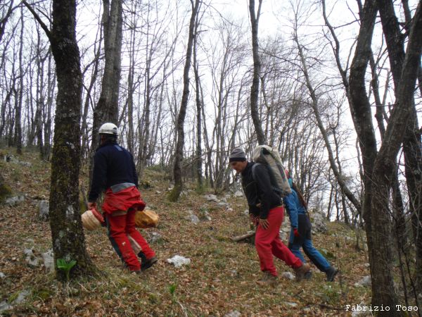 Passiamo accanto ad un buco, me ne dicono il nome ma capisco solo che e’ gia’ stato esplorato e non sembra essere degno di ulteriori attenzioni.