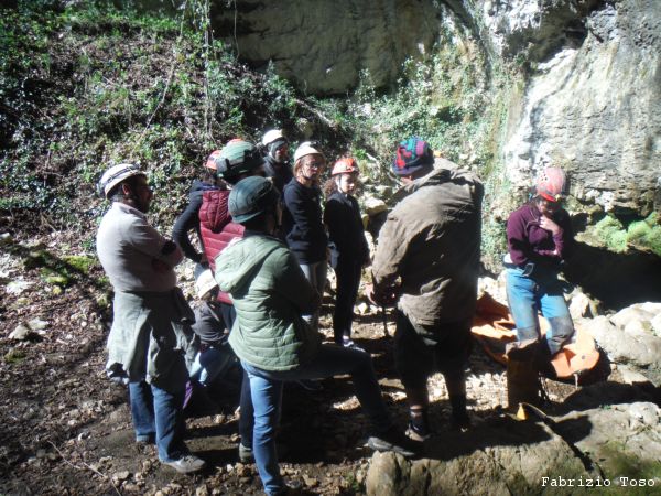 Il gruppo e’ tutto davanti alla grotta. Nerone si trasforma in perfetto cicerone e spiega cosa faremo oggi.